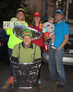 For Halloween we were having a hard time deciding on a quick and easy custom, so the Linfords told us they were going as sesame street characters because they had a collection of sesame street hats and offered us 2. So for our church Halloween party we had a sesame street group and brought sesame street cupcakes (again didn't take a picture). We won one of the awards for best desert and the everyone loved the sesame street group with a best custom to Jenny and Quinn (who actually did more than wear the right color shirt). The next night our friends the Alderk's had a Halloween party where Joe decided to have fun making a cake (he had time because it was on a Sat versus the ward party which was on a Friday), so he spent the majority of the day making an awesome small wedding cake, and then put bloody slashes through it. The best part was that it tasted good too! White cake with a strawberry cream cheese filling and butter cream frosting.